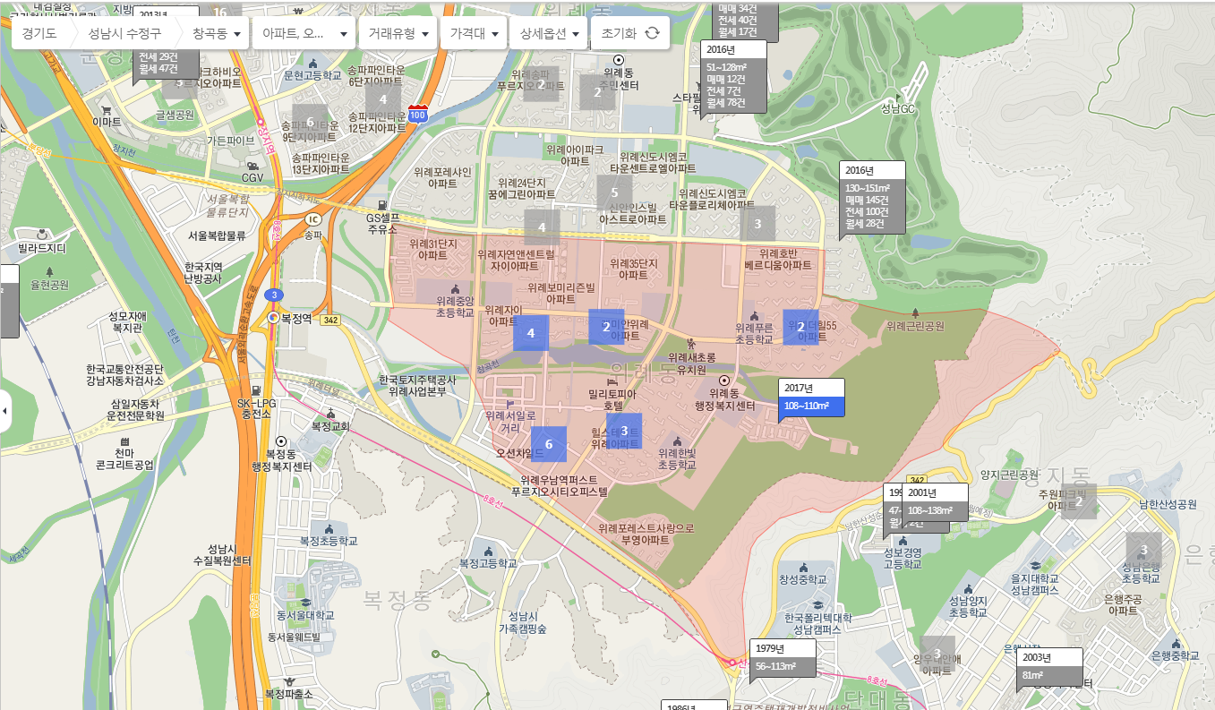 내가원하는 매물을 선택하면 전용면적과 매매가 몇건인지 전세가 몇건인지 월세가 몇건인지와 준공년도를 확인할 수 있습니다 최근 위례 아파트 가격이 많이 상승되었는데요... 매매가격과 상위 평균가등을 확인할수 있으며, 월세와 전세를 놓을때도 이를 기점으로 확인해 보실수 있습니다.